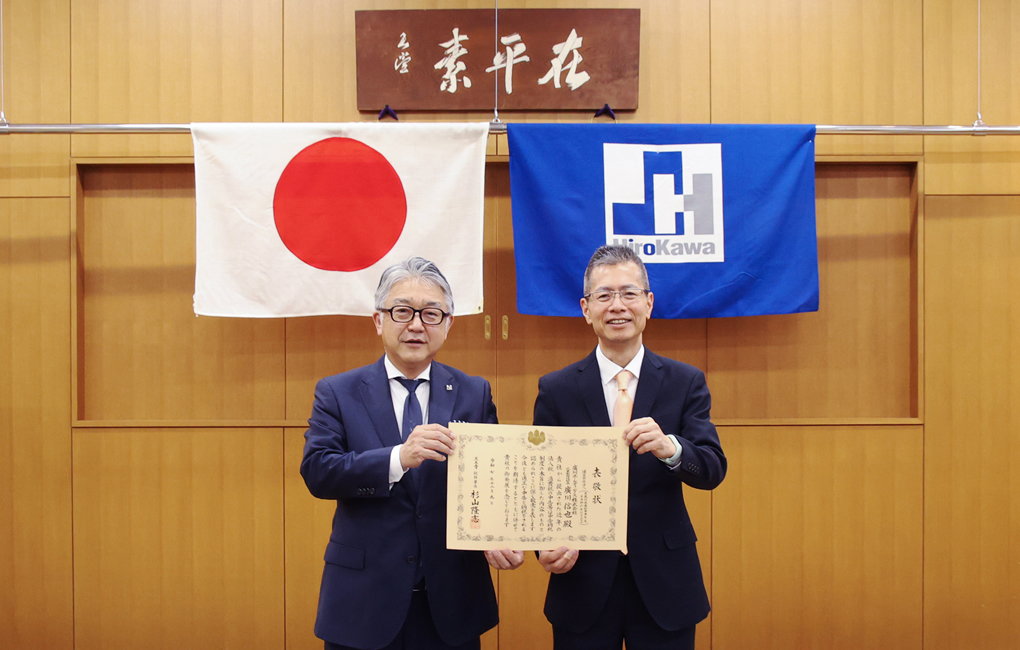 優良申告法人の表敬は、申告の適正性や納税への取り組みなどが総合的に評価され、5年ごとに実施されるものです。当社は「利益の有無にかかわらず、正直に数字を残す—それが商いの王道」という考えのもと、法令遵守と適正な税務に継続して取り組んでまいりました。今回の表敬状は、当社代表の廣川信也が大阪本社にて受領しました。