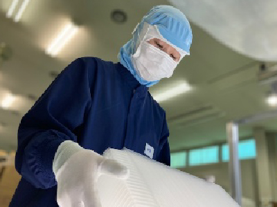機械で成形された容器をまとめ、状態を確認して箱へ梱包する作業を主に行います。トレーを使うお客様の手に渡った時に、「傷や割れ」がないように。「食品」に関わる、エースパックの製品を扱うプライドと責任を持って、しっかり見て包みます。