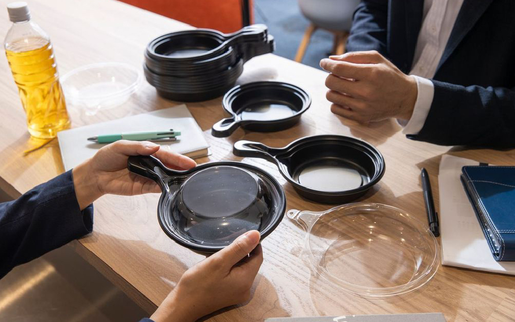 プラスチックの食品容器を作る過程では様々な作業があり、協力しながら仕事をしています。